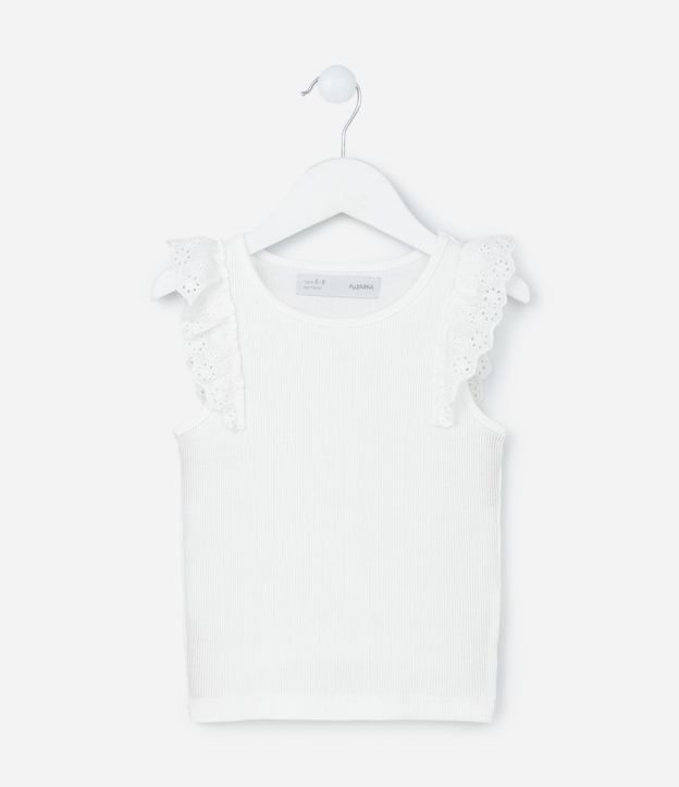 Regata Infantil em Ribana com Babado de Broderie - Tam 5 a 14 anos Branco