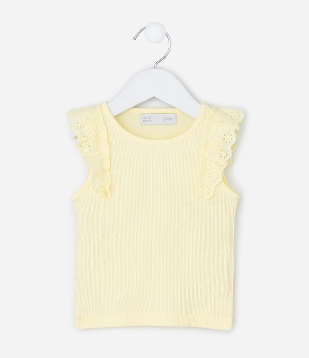Regata Infantil em Ribana com Babado em Broderie - Tam 1 a 5 Anos Amarelo
