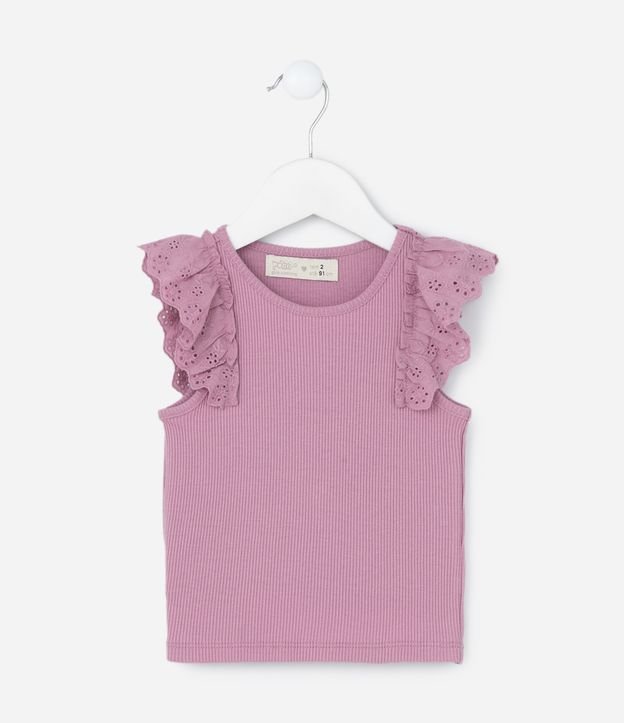 Regata Infantil em Ribana com Babado em Broderie - Tam 1 a 5 Anos