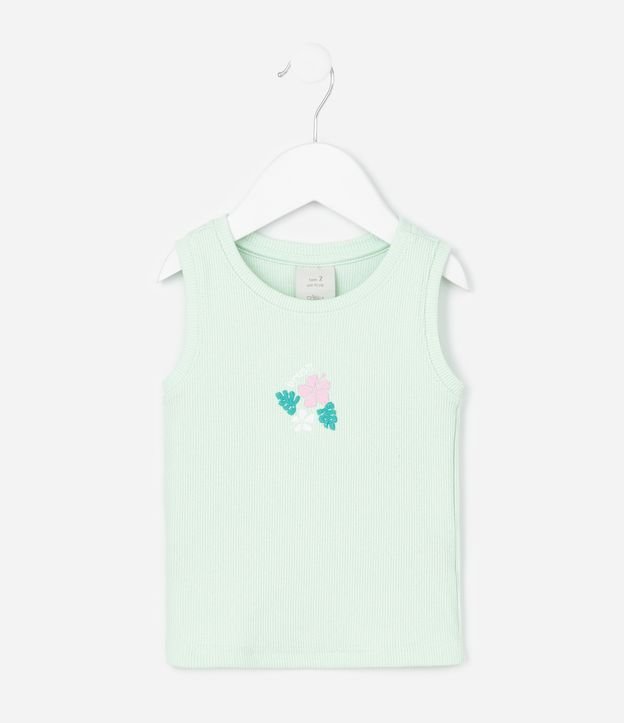 Regata Infantil em Ribana com Bordado Floral - Tam 1 a 6 Anos Verde