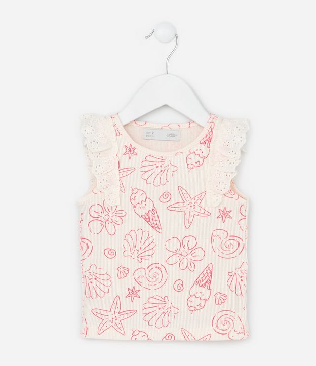 Regata Infantil em Ribana com Detalhe em Broderie e Estampa - Tam 1 a 6 Anos Bege