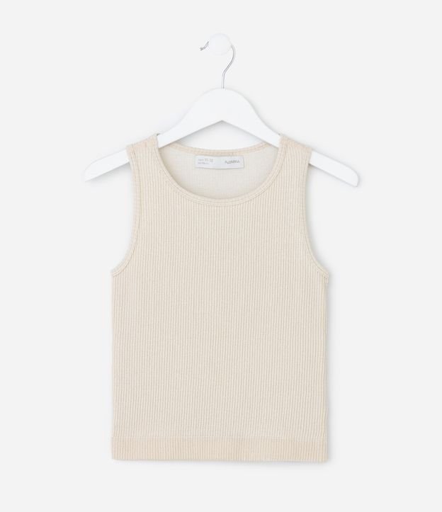 Regata Infantil Seamless com Brilhos e Canelada - Tam 5 a 14 Anos Bege