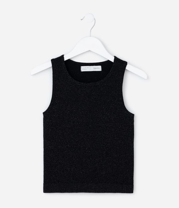 Regata Infantil Seamless com Brilhos e Canelada - Tam 5 a 14 Anos Preto