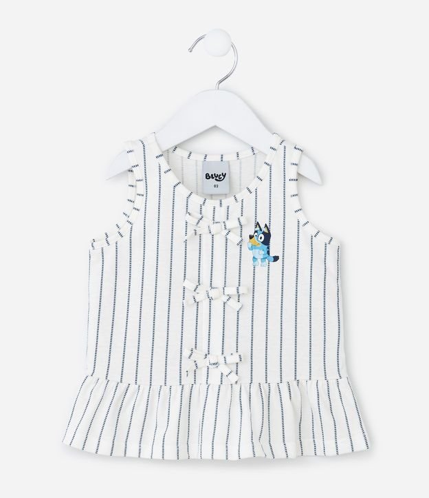 Regata Infantil Slim com Estampa de Listras Bluey - Tam 1 a 6 Anos Branco