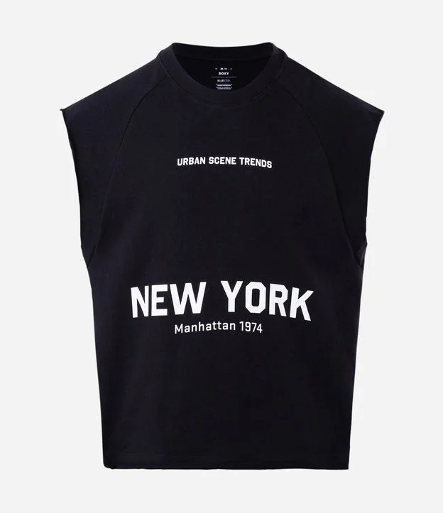 Regata Moletinho com Lettering New York Preto