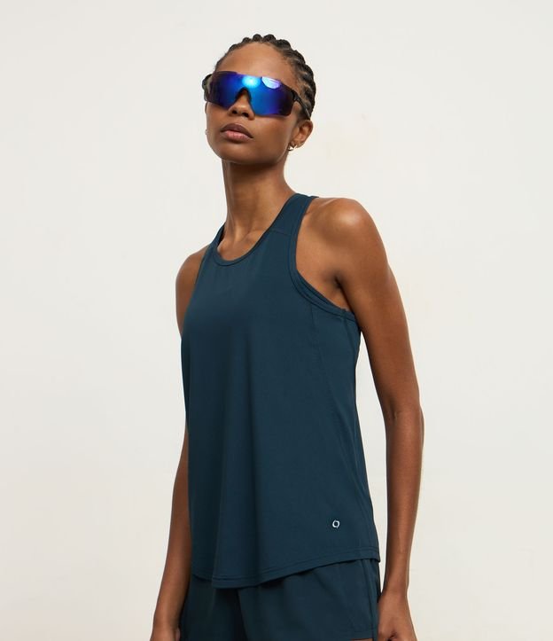 Regata nadador esportiva, confeccionada em microfibra leve, com gola redonda e costas com laterais abertas. Peça com textura canelada. Este produto possui fios reciclados de poliéster em sua composição, sendo ambientalmente mais responsável.