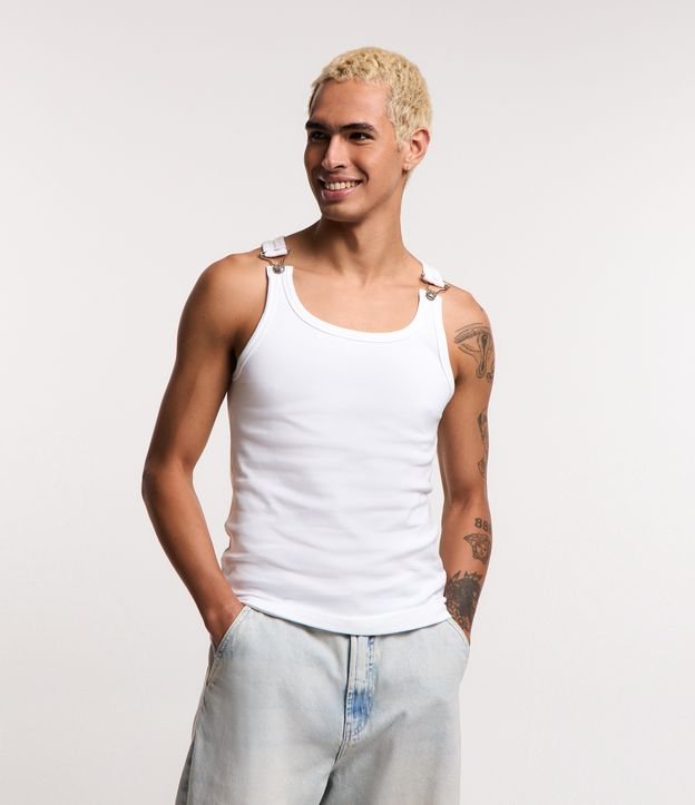 Regata Regular em Algodão com Presilhas de Metal nos Ombros