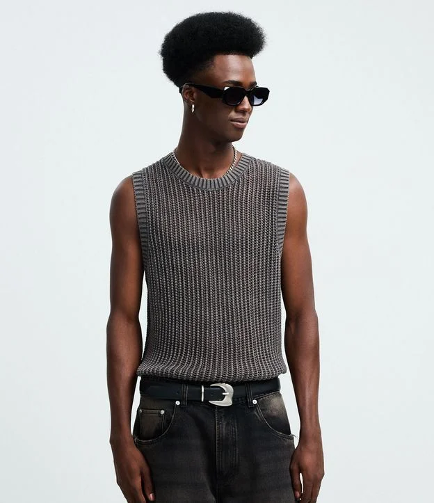 Regata masculina confeccionada em estilo tricô mais sustentável no modelo regular, possui gola redonda, ponto aberto.
