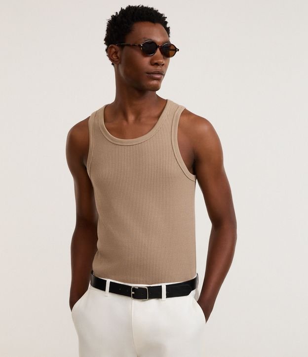 Regata masculina confeccionada em flamê mais sustentável com boas práticas ambientais, no modelo regular. Possui gola redonda, sem estampa e texturizada.