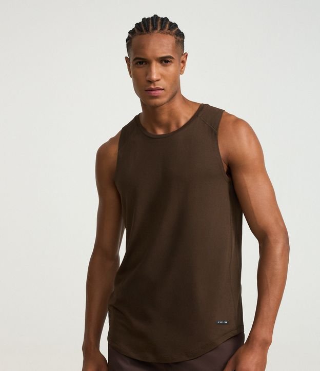 Regata Regular Esportiva com Etiqueta na Barra e Detalhe Contrastante Marrom Escuro