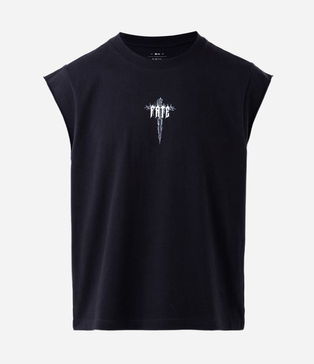Regata Relaxed em Algodão com Estampa Localizada Fate Preto