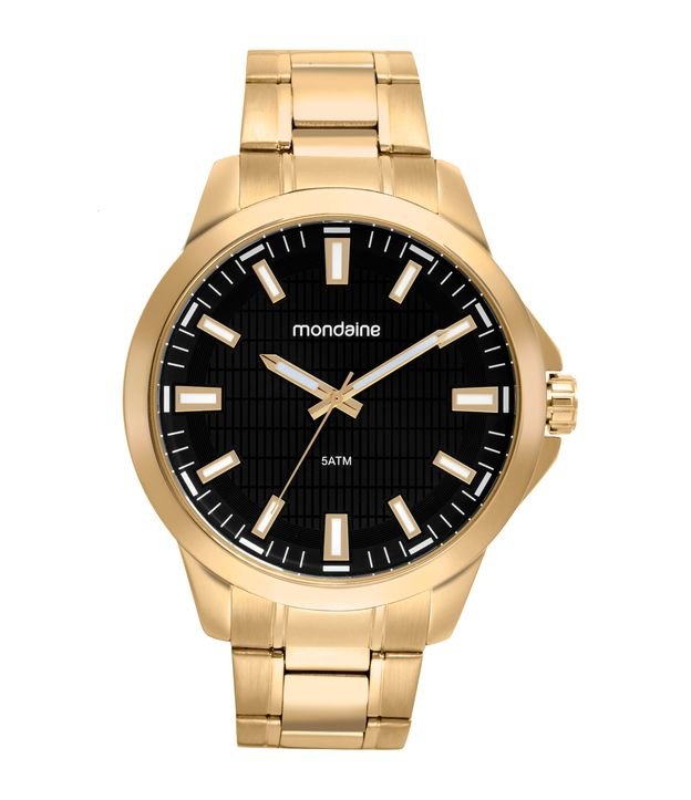 Relógio Aço Masculino Analógico Com Caixa Em Metal E Pulseira Em Aço Mondaine Dourado