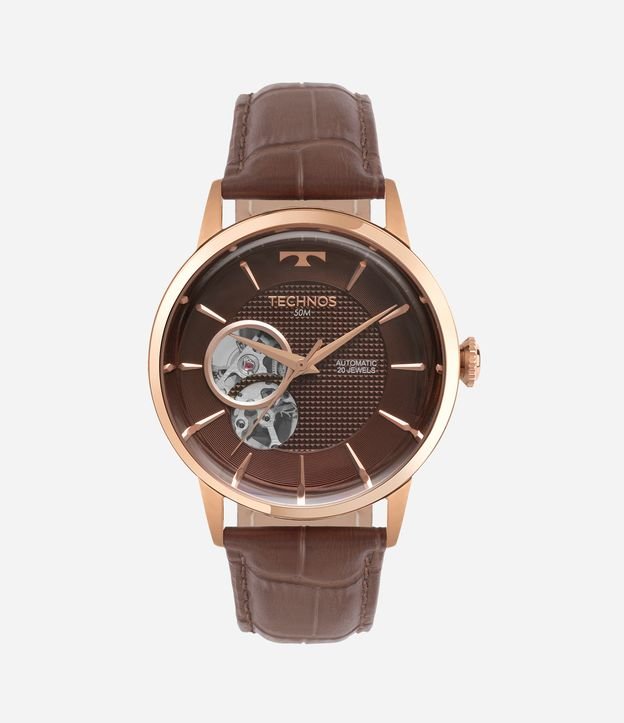 Relógio Analógico Aço e Couro Technos Marrom