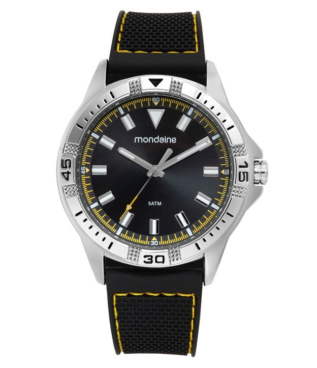 Relógio Analógico Metal Cromado e Silicone Preto Masculino Mondaine