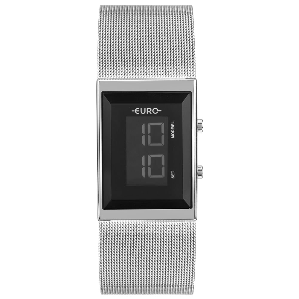 A coleção que é sucesso na Euro, Fashion Fit chegou com tudo, unindo estilo e s modernidade. Versão digital em mesh prateada ainda mais fashion com pulseiras imponentes e mostrador com lente chanfrada.