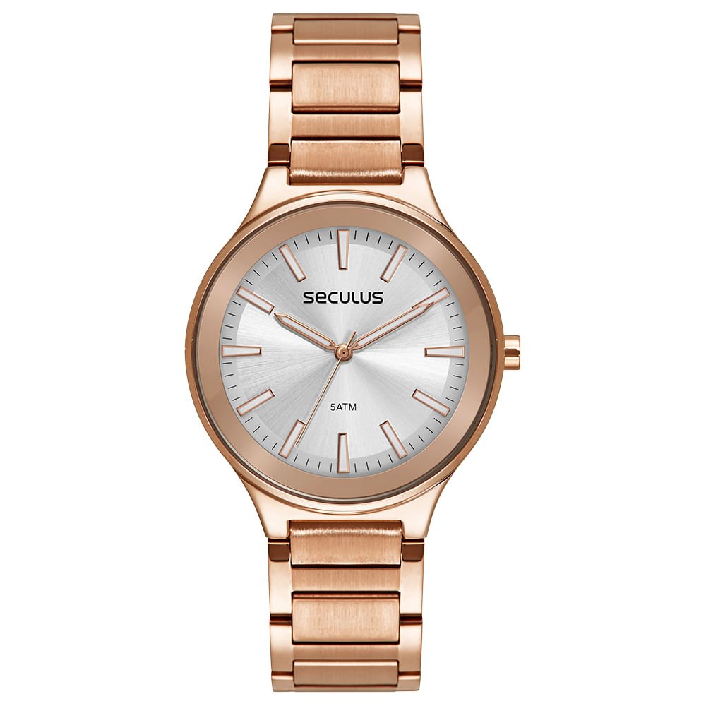 Apresentamos o relógio analógico com calendário, destacando-se pela folheação rose gold. Este modelo possui uma caixa em metal de 4 cm de diâmetro e um visor com efeito metalizado e pintura no vidro. Os marcadores geométricos adicionam um toque moderno, enquanto a pulseira mesclada em aço escovado e polido proporciona durabilidade e estilo. Perfeito para quem busca um acessório sofisticado e funcional.
