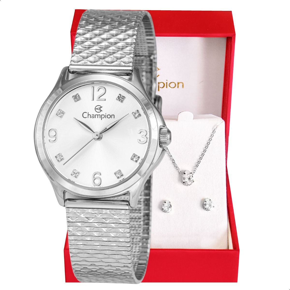 Relógio Feminino Champion Analógico Prata Pequeno CF24117Q + Colar e Brincos