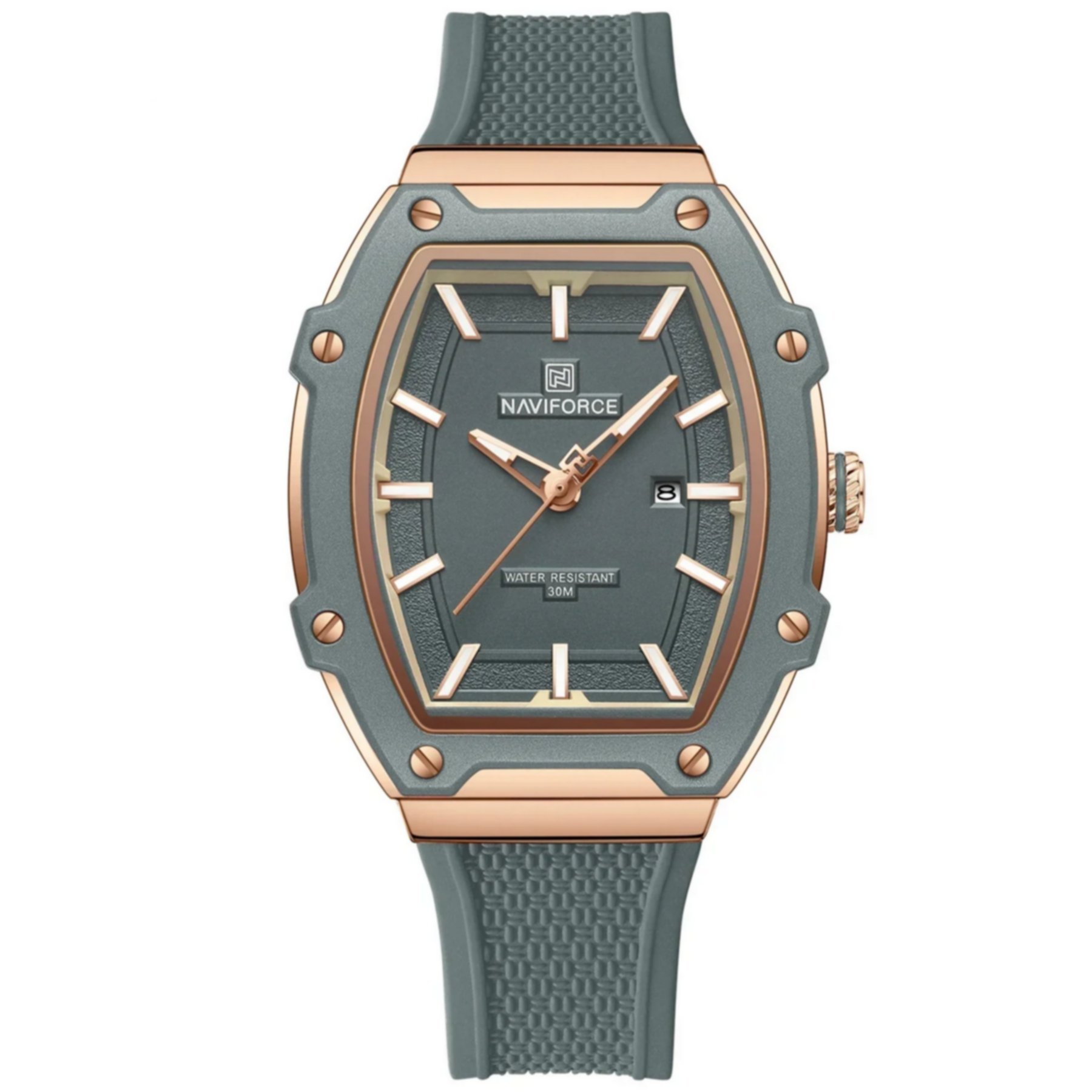 [Design Sofisticado:] O formato tonneau do estojo e a cor rose gold proporcionam um look inovador, trazendo um diferencial marcante aos relogios convencionais e ressaltando seu gosto apurado por detalhes.