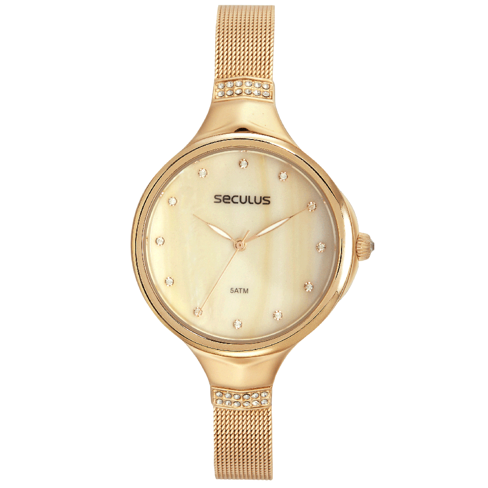 Relógio Feminino Madrepérola Dourado Dourado