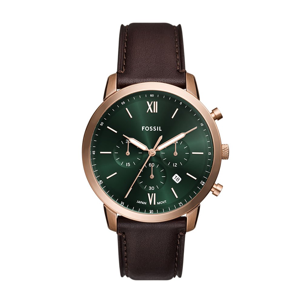 Conheça o Neutra, um cronógrafo com design elegante e minimalista. Esta versão apresenta mostrador verde sunray e pulseira de couro marrom, trazendo um toque clássico ao modelo. Com uma caixa de 44 mm em aço inoxidável rosé, o relógio conta com movimento cronógrafo de quartzo preciso, unindo estilo atemporal e funcionalidade moderna.