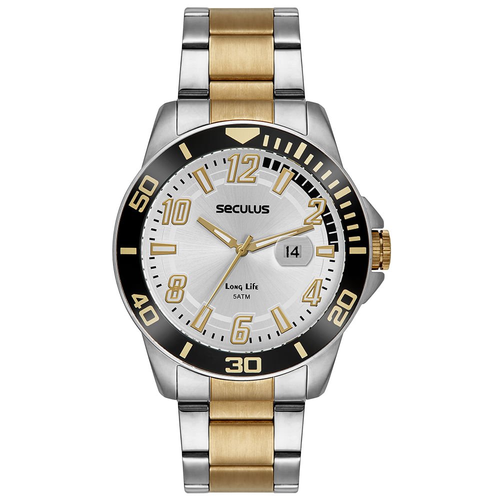 Relógio Masculino Aço Com Lupa Para Calendário Bicolor
