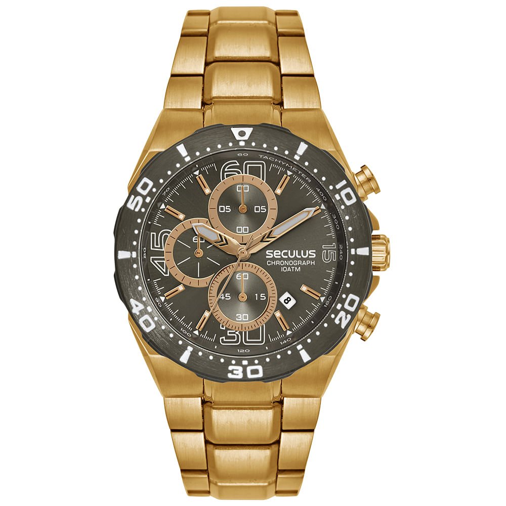 A pulseira em Aço preto é equipada com fecho por trava de segurança, garantindo que o relógio permaneça no pulso. O modelo possui alta resistência à água de 10 ATM, além de fundo de rosca. É uma peça preparada para diferentes desafios.