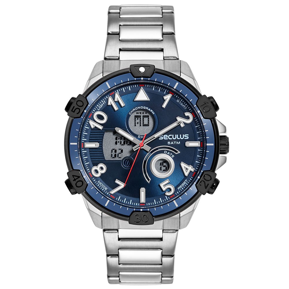 Relógio Masculino Anadigi Aço Prata