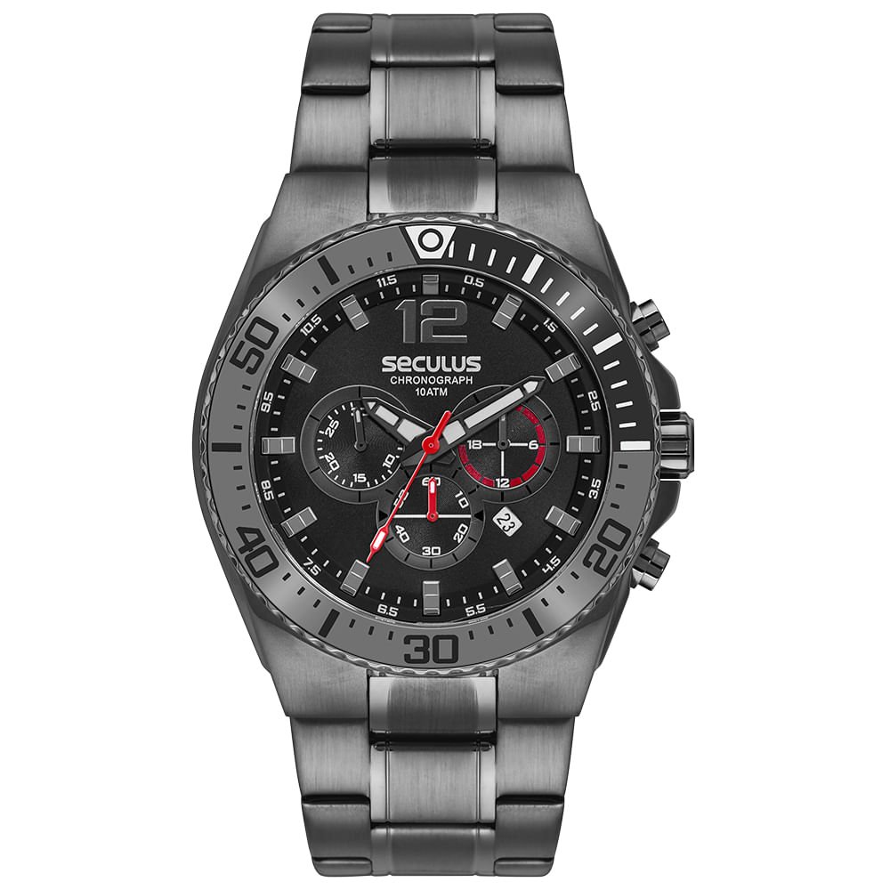 Relógio Masculino Cronógrafo Catraca Bicolor Aço Preto