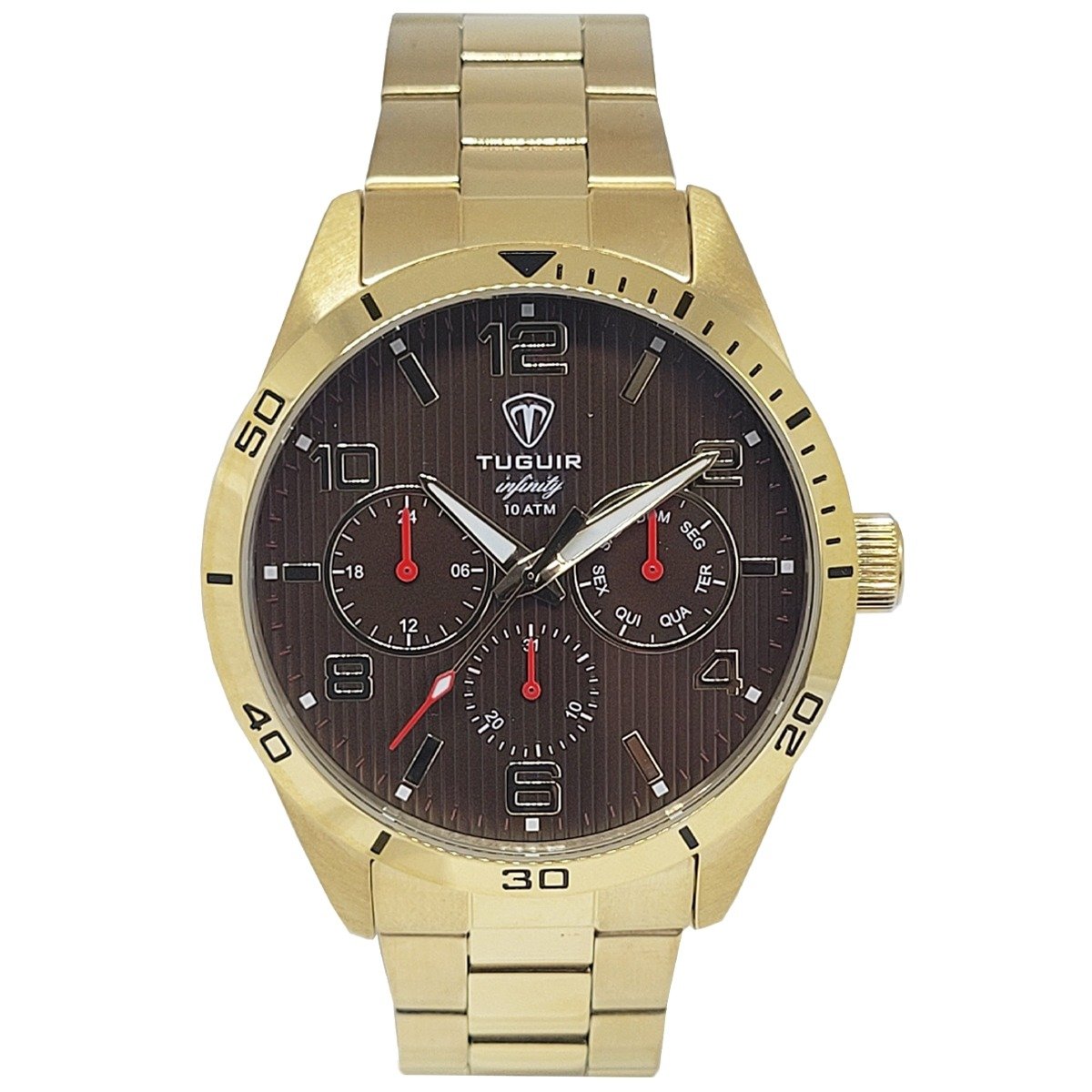 Relógio Masculino de Aço Relógio MultiFunção Tuguir Analógico Infinity TGI37059 Dourado e Marrom