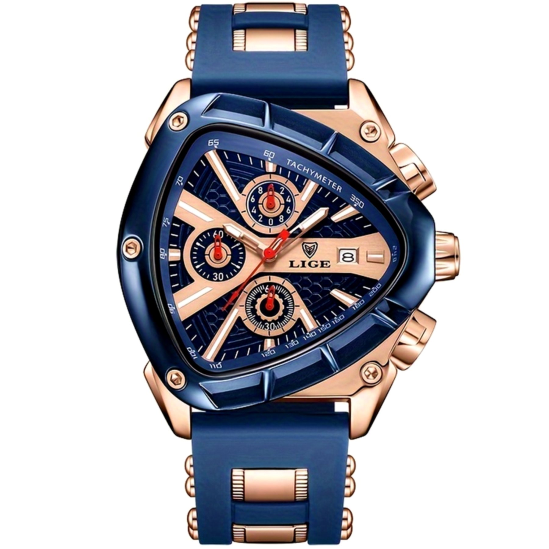 Relogio Masculino Design Criativo Triangulo Pulseira de Borracha Impermeavel 30M Azul