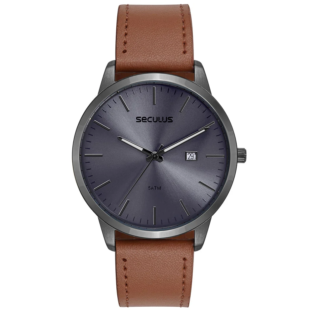Relógio Masculino Minimalista Chumbo Couro legítimo