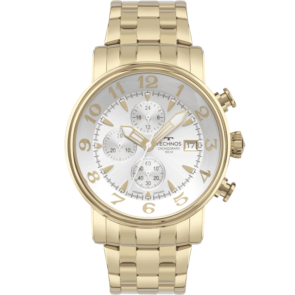 O Technos Grandtech JS15ENA/1K é um relógio imponente que une sofisticação e robustez em cada detalhe. Produzido em aço inoxidável dourado, ele traz caixa e pulseira resistentes, combinadas a um mostrador prateado refinado com funções de cronógrafo e calendário.