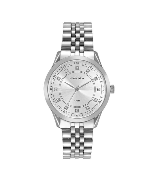 Relógio Mondaine Feminino 99763L0MVNE1. Acompanha Certificado de Garantia, Manual de Instruções, Embalagem Original e Nota Fiscal. Analógico, Caixa Aço Inoxidável, Pulseira Aço Inoxidável, Mostrador Prateado com Cristais, Vidro Cristal Mineral, Resistência à Água 5ATM, Caixa medindo 40mm (Aprox.)