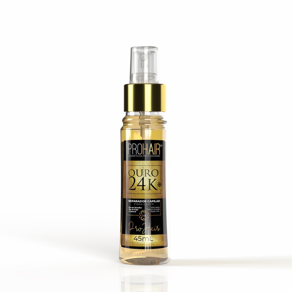Beneficios O Reparador Ouro 24K? ProHaivp foi desenvolvido especialmente para hidratar profundamente as pontas ressecadas, formando um leve filme protetor na cuticula capilar e doando brilho tridimensional.