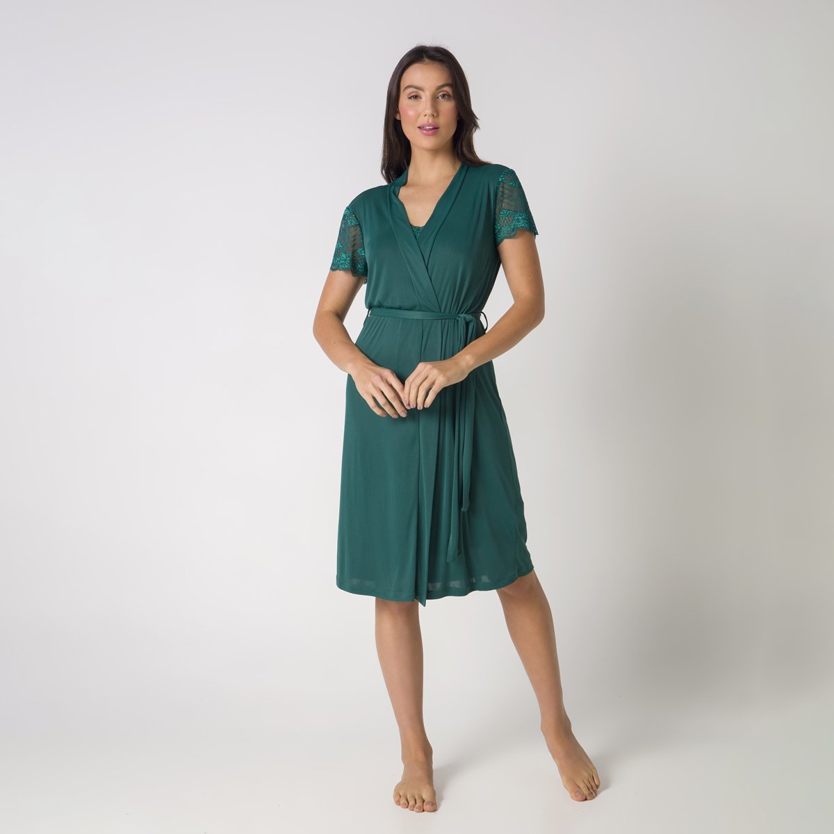 Robe Feminino Curto Verde Linkon com Renda