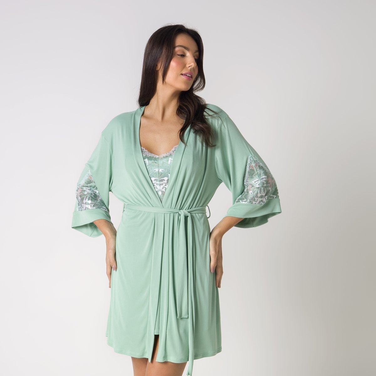 Robe Feminino Curto Verde Teos com Renda