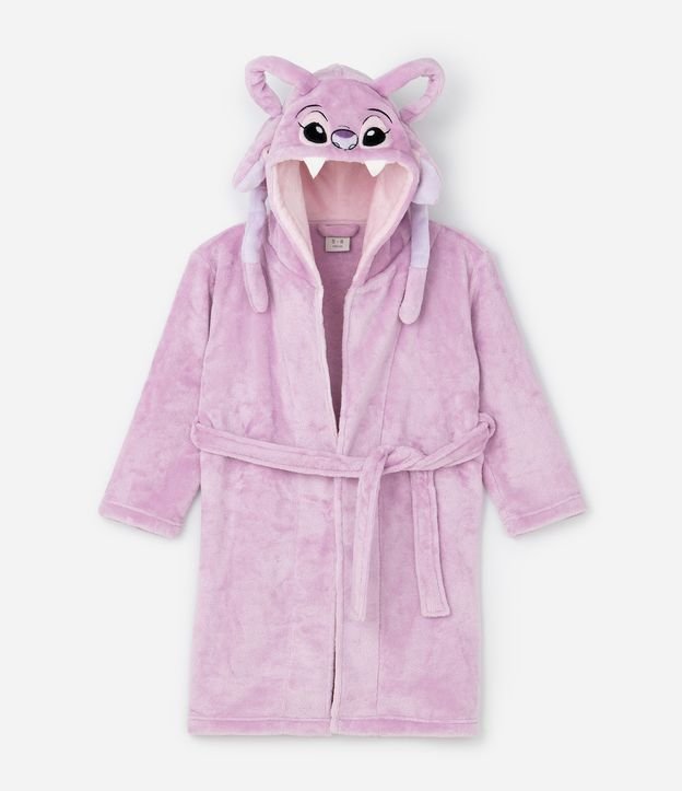 Roupão infantil confeccionado em fleece felpudo de toque macio, inspirado na personagem Angel do universo de Lilo & Stitch, trazendo charme e fantasia ao visual. Possui capuz temático, mangas longas e faixa para amarração, garantindo aquecimento e diversão nos momentos de descanso.