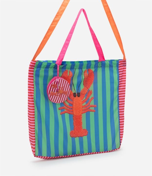 Sacola de Compras com Listras e Estampa de Lagosta