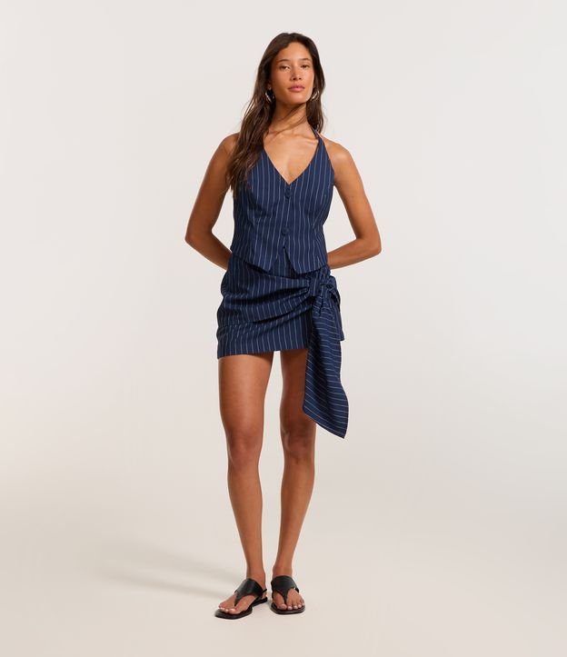 Saia Curta Alfaiatada com Risca de Giz e Laço Azul