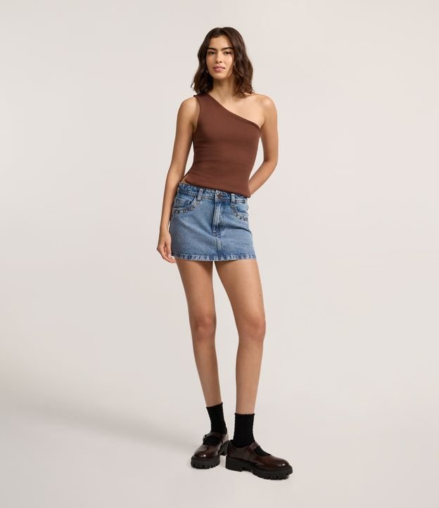 • Saia Curta Cintura Média em Jeans com Tachas Metalizadas Azul 5