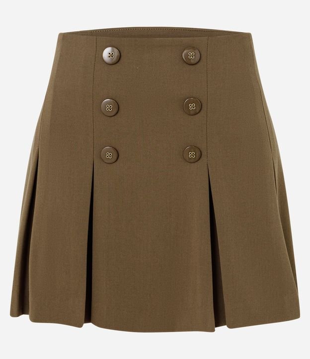 Saia Curta em Alfaiataria com Pregas e Botões Decorativos Verde