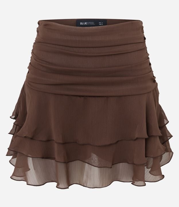 Saia Curta em Chiffon com Babados Franzidos Marrom