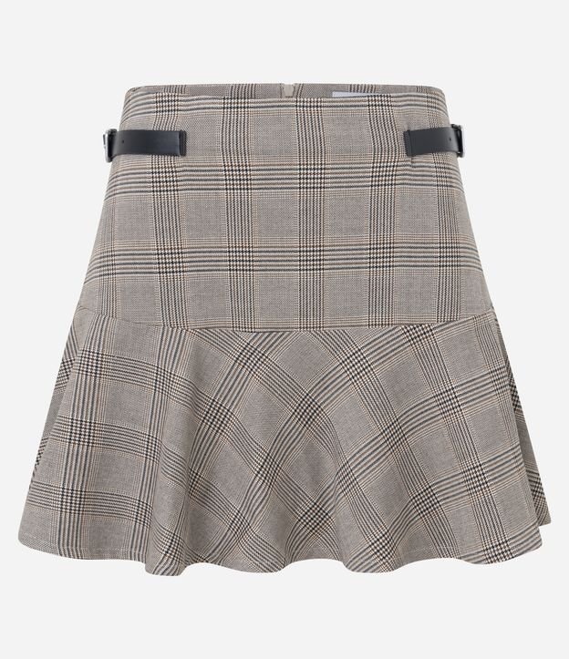 Saia Curta em Flanela Xadrez com Babado Bege