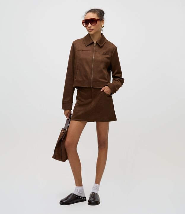 Saia feminina em suede com acabamento liso e visual versátil para compor produções casuais ou urbanas. Modelo curto, acima do joelho, com toque macio e caimento estruturado que valoriza a silhueta. Peça essencial para diferentes combinações no dia a dia.