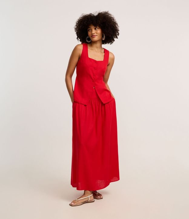Saia Evasê Longa em Viscolinho com Lastex no Còs Vermelho