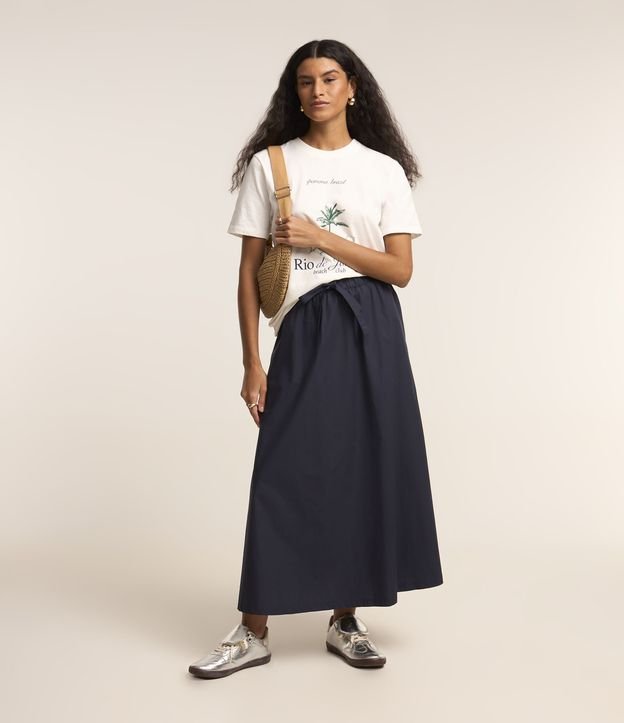 Saia Evasê Midi em Tricoline com Amarração Laço