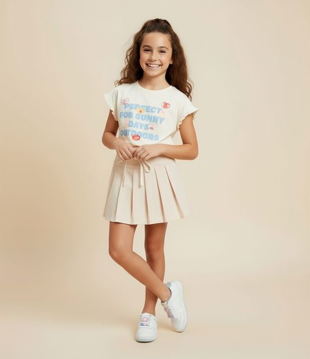 Saia Infantil em Alfaiataria com Pregas e Cintinho - Tam 5 A 14 Anos Bege