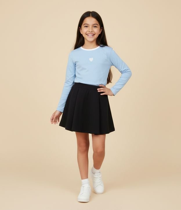 Saia Infantil em Cotton com Pregas e Short Interno – Tam 5 a 16 Anos Preto