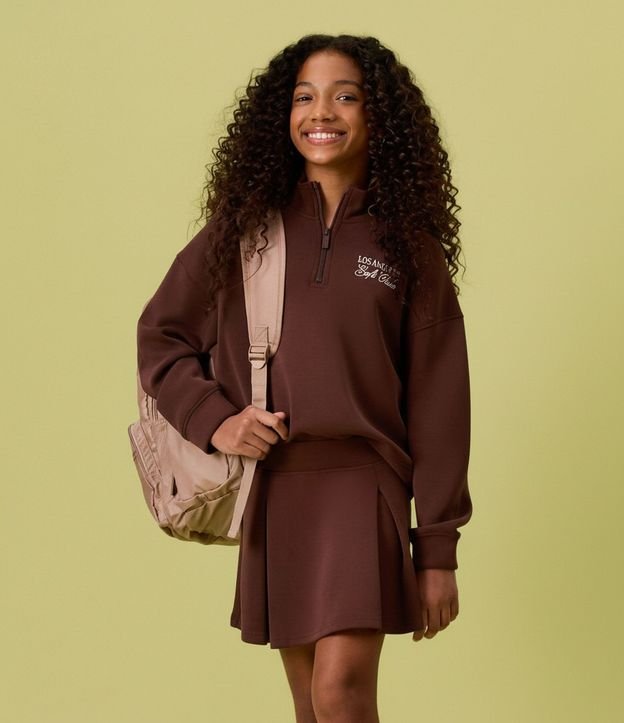 Saia Infantil em Moletinho com Pregas Peach Touch – Tam 5 a 14 Anos Marrom Escuro