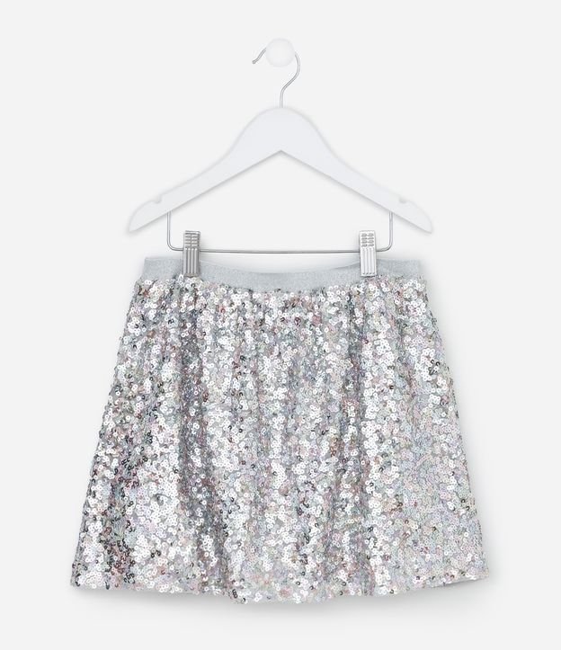 Saia Infantil em Paetê com Elástico Brilhante - Tam 5 a 14 Anos Prata